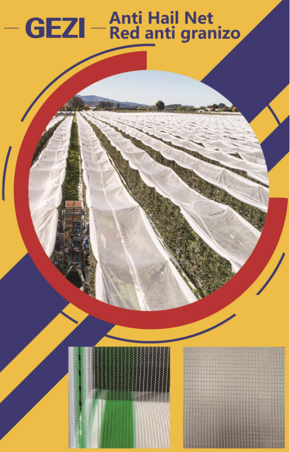 GEZI has developed its own type of hail net. The hail net type GEZI with a mesh size of 2.8mm x 8.7mm is the optimal protection against small and large hail stones. Different colours of anti hail nets can be chosen. GEZI supplies hail nets in the colours: Crystal, Grey, Black, Light Grey and Milk White. If you need a different colour, this is possible after consultation. The colour of the nets hail depends on the variety and the light conditions in the orchard. The hail nets are placed on the crosswire, so that there is no contact with the fruit trees under the flat hail net system.
